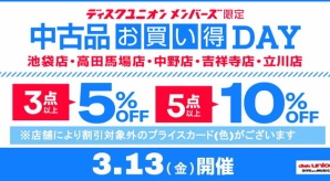 3/13(金)メンバーズ限定中古品お買い得DAY開催!【池袋・高田馬場・中野・吉祥寺・立川】